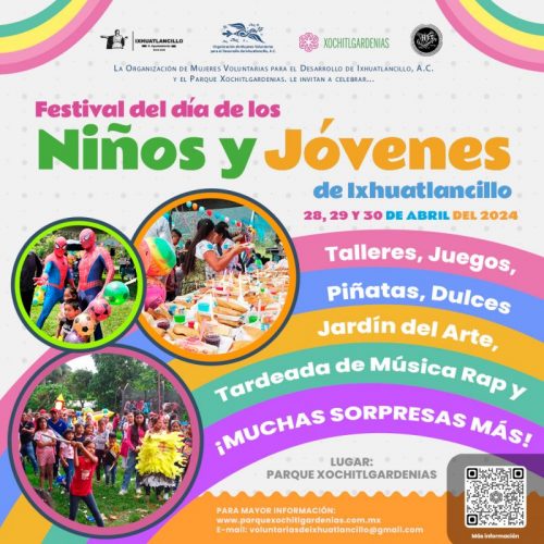 Como cada año, en su edición dos mil veinticuatro, el Festival del Día de los Niños y Jóvenes de Ixhuatlancillo (FDNyJI24), se realizará en el Parque Xóchitlgardenias (PX), espacio en el cual pueden realizar actividades de Campamento y Exploración, Avistamiento de Luciérnagas y al mismo tiempo, se contará con un programa cultural, recreativo y educativo que resulte inolvidable y significativo tanto para niños y jóvenes, así como para las familias que saben, en los eventos promovidos por la Asociación Civil encontrarán sana convivencia y una excelente experiencia lúdica que dejará felices y contentos a pequeños y adultos.