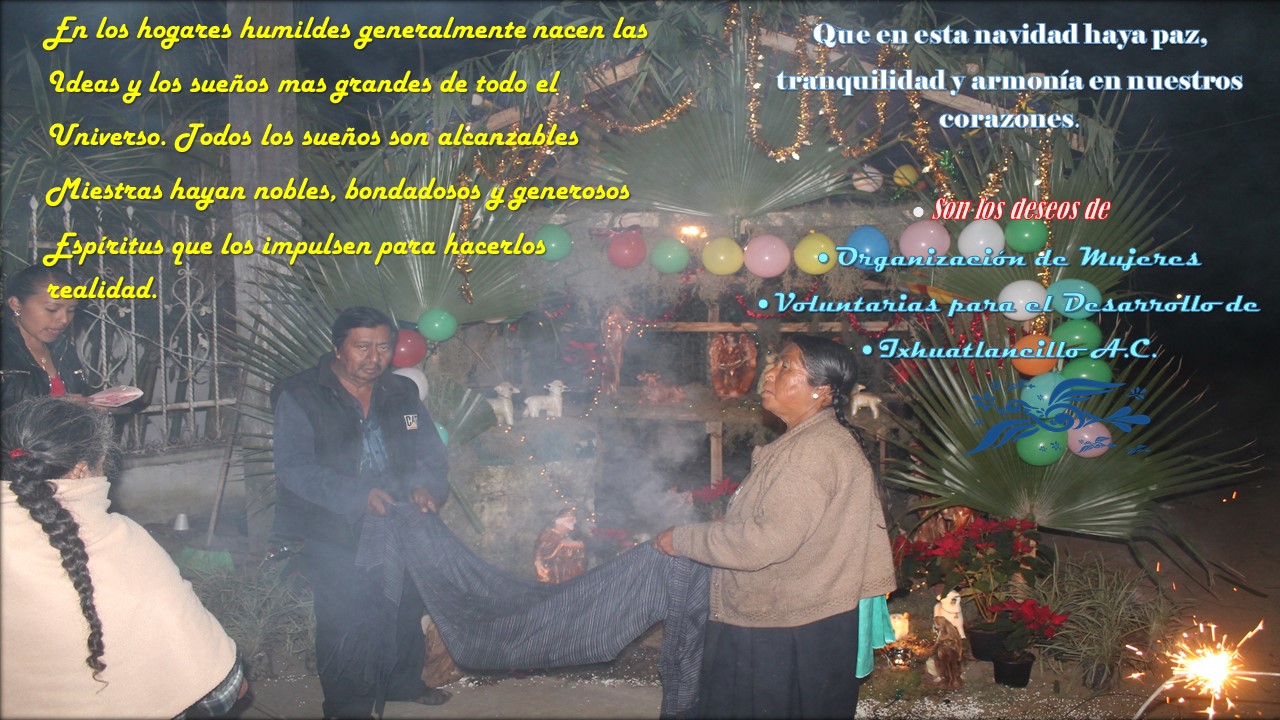Por lo cual hacemos la atenta y cordial invitación para que el próximo 24 de diciembre 2021 nos acompañe y celebremos juntos la Posada Navideña que año con año todos de una manera organizada ofrecemos para los niños y jóvenes de nuestro pueblo indígena. El mayor objetivo del evento es promover la sana convivencia entre amigos, vecinos y familias en general de la comunidad. La celebración de la Posada Navideña la iniciaremos a las seis de la tarde en la calle Cinco de Mayo avenida Águila de Oro, colonia Centro, municipio de Ixhuatlancillo, Veracruz.